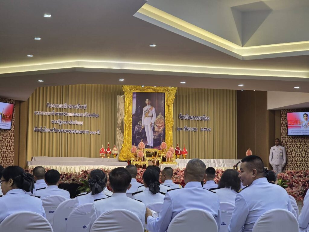สศท.5 ร่วมพิธีวางพานพุ่มดอกไม้ถวายราชสักการะพระบาทสมเด็จพระปรเมนทรมหาอานันทมหิดล พระอัฐมรามาธิบดินทร เนื่องในโอกาสวันพระบรมราชสมภพครบ 100 ปี วันเสาร์ที่ 20 กันยายน 2568 เวลา 08.00 น. ณ หอประชุมเปรมติณสูลานนท์ ศาลากลางจังหวัดนครราชสีมา นายชายศักดิ์ วุฒิศักดิ์ ผู้อำนวยการสำนักงานเศรษฐกิจการเกษตรที่5 มอบหมายให้ข้าราชการ และเจ้าหน้าที่ สำนักงานเศรษฐกิจการเกษตรที่ 5 เข้าร่วมกับหน่วยงานในสังกัดกระทรวงเกษตรและสหกรณ์ จังหวัดนครราชสีมา เข้าร่วมพิธีวางพานพุ่มดอกไม้ถวายราชสักการะพระบาทสมเด็จพระปรเมนทรมหาอานันทมหิดล พระอัฐมรามาธิบดินทร เนื่องในโอกาสวันพระบรมราชสมภพครบ 100 ปี เพื่อแสดงความจงรักภักดีและน้อมรำลึกถึงพระมหากรุณาธิคุณอย่างหาที่สุดมิได้