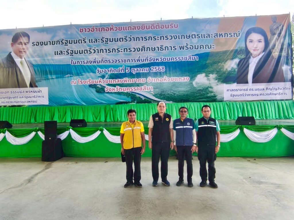 วันที่ 5 ตุลาคม 2568 นางธัญธิตา บุญญมณีกุล รองเลขาธิการสำนักงานเศรษฐกิจการเกษตร พร้อมด้วย นายชายศักดิ์ วุฒิศักดิ์ ผู้อำนวยการสำนักงานเศรษฐกิจการเกษตรที่5 ร่วมคณะลงพื้นที่ตรวจราชการจังหวั นครราชสีมา ของรองนายกรัฐมนตรี รัฐมนตรีว่าการกระทรวงเกษตรและสหกรณ์ ร้อยเอกธรรมนัส พรหมเผ่าและ ศ.ดร. นฤมล ภิญโญสินวัฒน์ รัฐมนตรีว่าการกระทรวงศึกษาธิการ โดยมี นายวิณะโรจน์ ทรัพย์ส่งสุข ปลัดกระทรวงเกษตรและสหกรณ์ ผู้บริหารหน่วยงานในสังกัดกระทรวงเกษตรและสหกรณ์ หน่วยงานส่วนท้องถิ่น และเกษตรกร เข้าร่วม ณ โรงเรียนมัธยมด่านขุนทด ตำบลด่านขุนทด อำเภอด่านขุนทด และ #โรงเรียนห้วยแถลงพิทยาคม ตำบลห้วยแถลง อำเภอห้วยแถลง จังหวัดนครราชสีมา