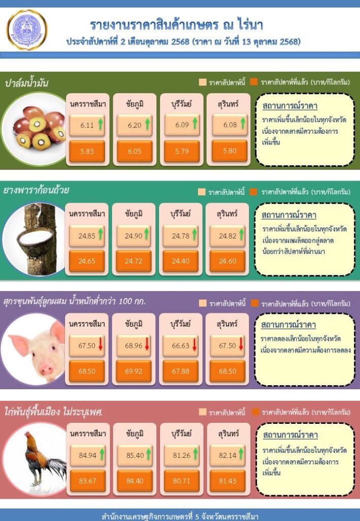 รายงานราคาสินเค้าเกษตร ราคา ณ ไร่นา ประจำสัปดาห์ที่ 1 เดือนตุลาคม 2568 สำนักงานเศรษฐกิจการเกษตรที่ 54 สัปดาห์ ago2 สัปดาห์ ago 0