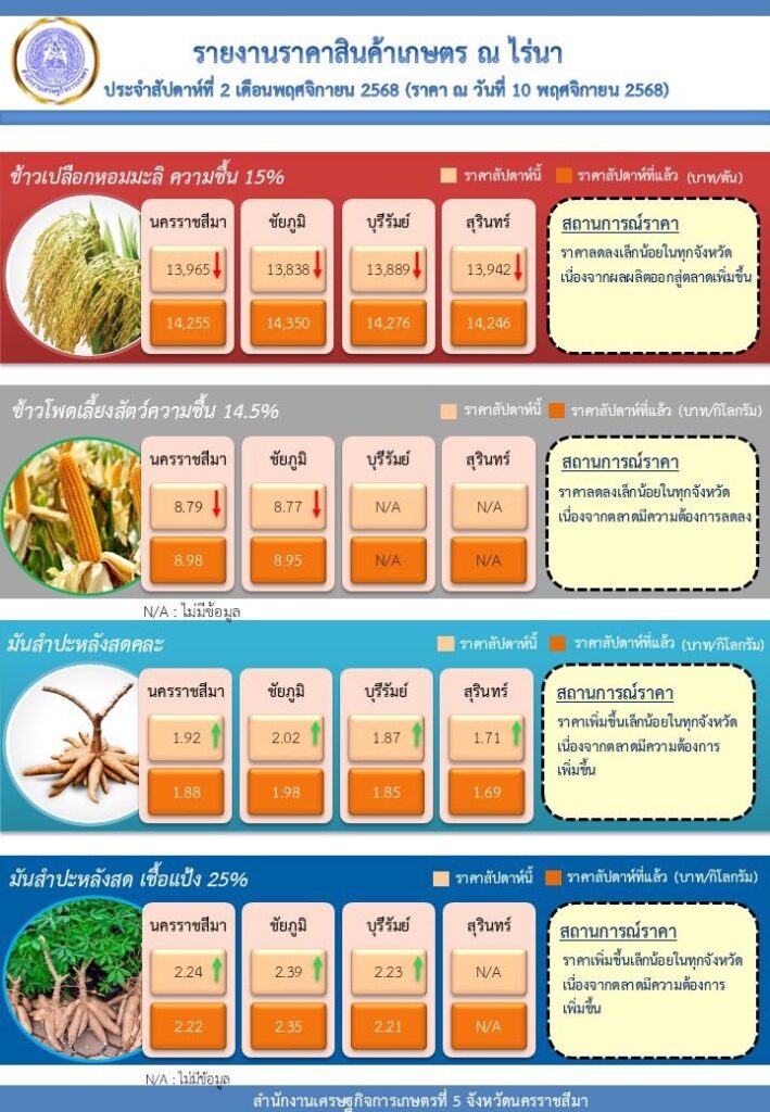 รายงานราคาสินเค้าเกษตร ราคา ณ ไร่นา ประจำสัปดาห์ที่ 4 เดือนพฤศจิกายน 2568 สำนักงานเศรษฐกิจการเกษตรที่ 53 สัปดาห์ ago2 สัปดาห์ ago 0
