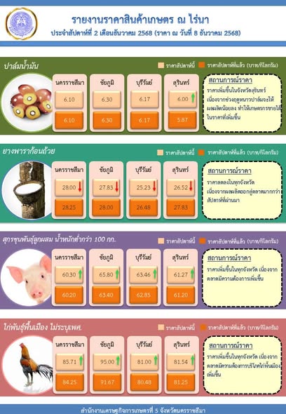 รายงานราคาสินเค้าเกษตร ราคา ณ ไร่นา ประจำสัปดาห์ที่ 3 เดือนพฤศจิกายน 2568 สำนักงานเศรษฐกิจการเกษตรที่ 51 เดือน ago2 สัปดาห์ ago 0