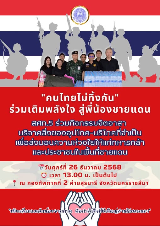 “คนไทยไม่ทิ้งกัน” ร่วมส่งต่อน้ำใจ สู่พี่น้องและทหารกล้าชายแดน!