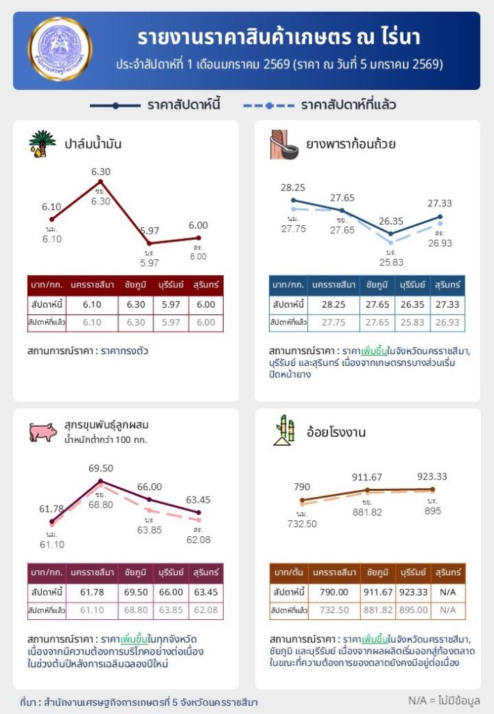 รายงานราคาสินเค้าเกษตร ราคา ณ ไร่นา ประจำสัปดาห์ที่ 4 เดือน ธันวาคม 2568 สำนักงานเศรษฐกิจการเกษตรที่ 52 สัปดาห์ ago2 สัปดาห์ ago 0